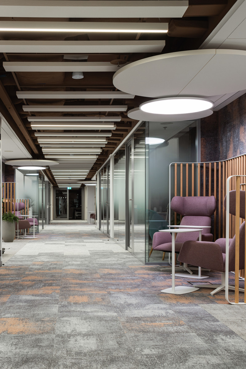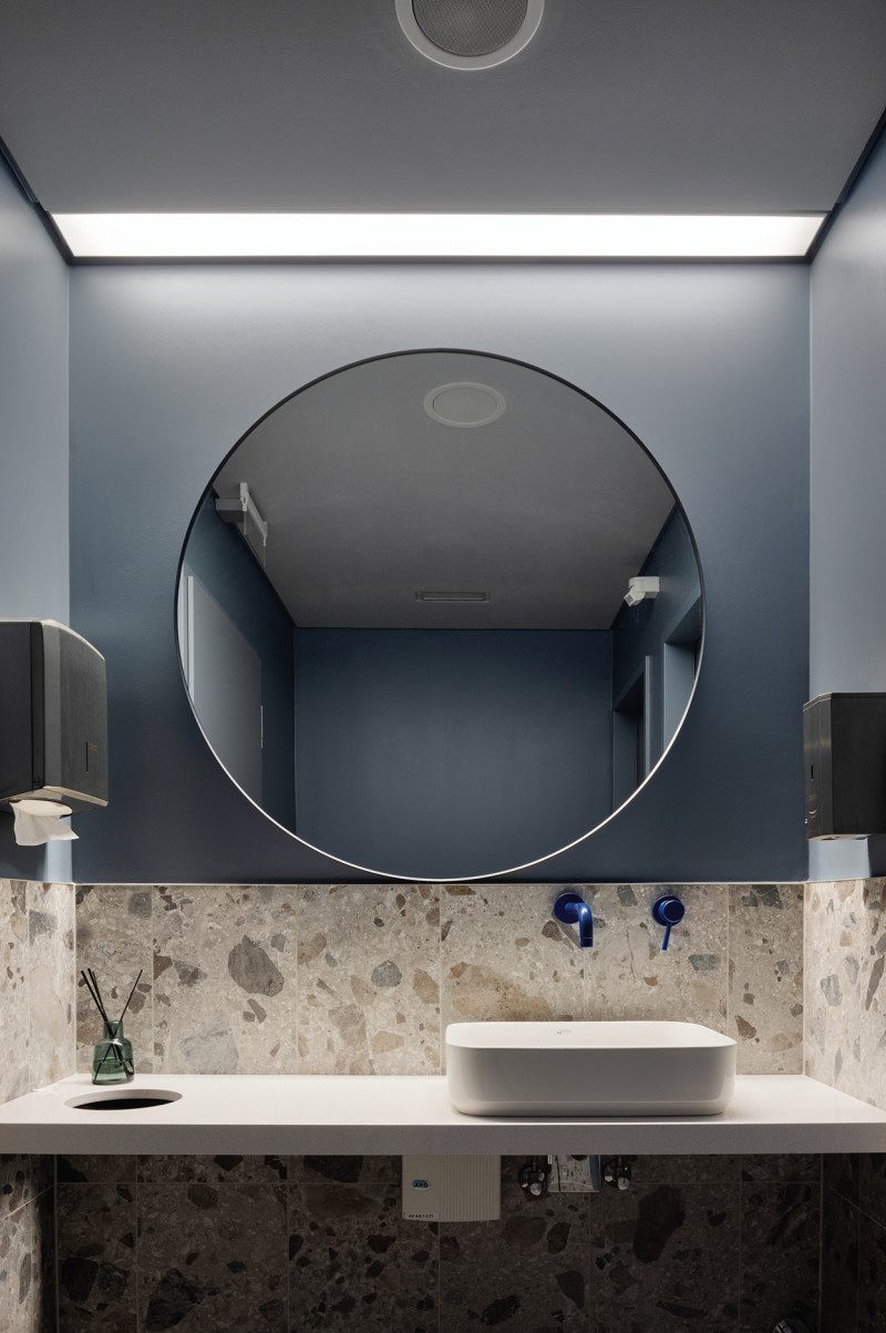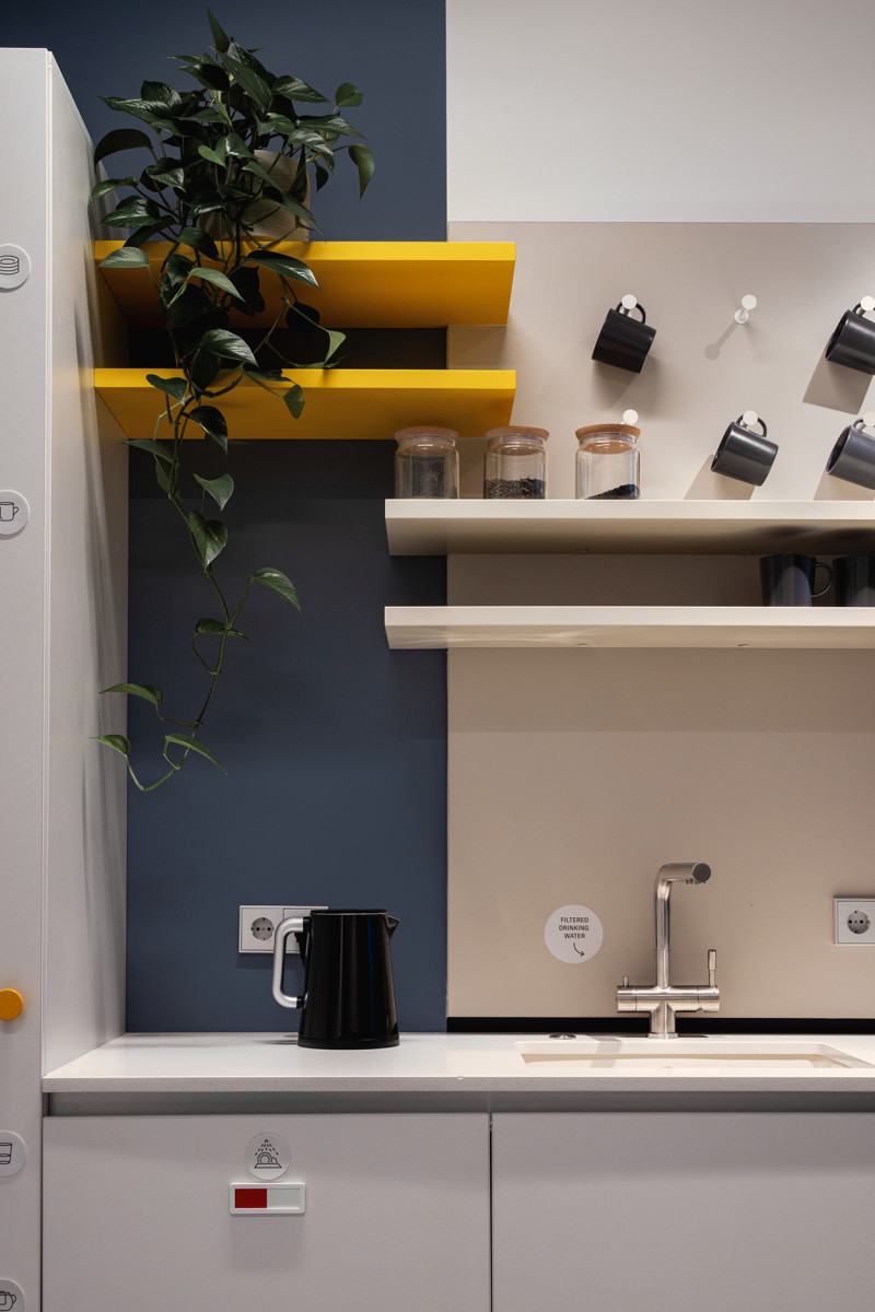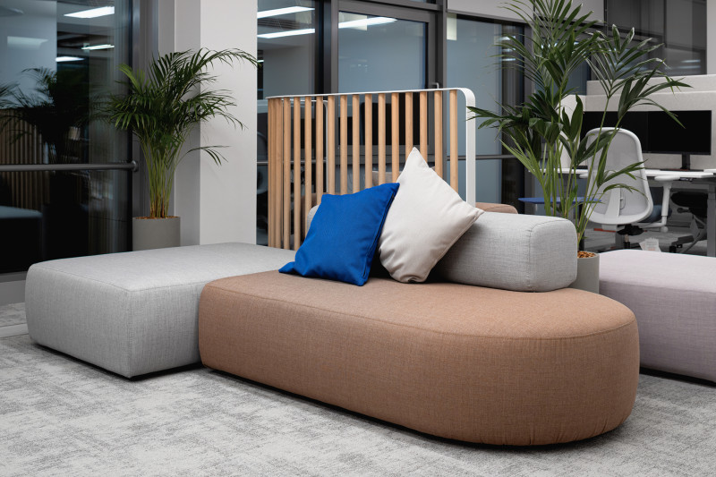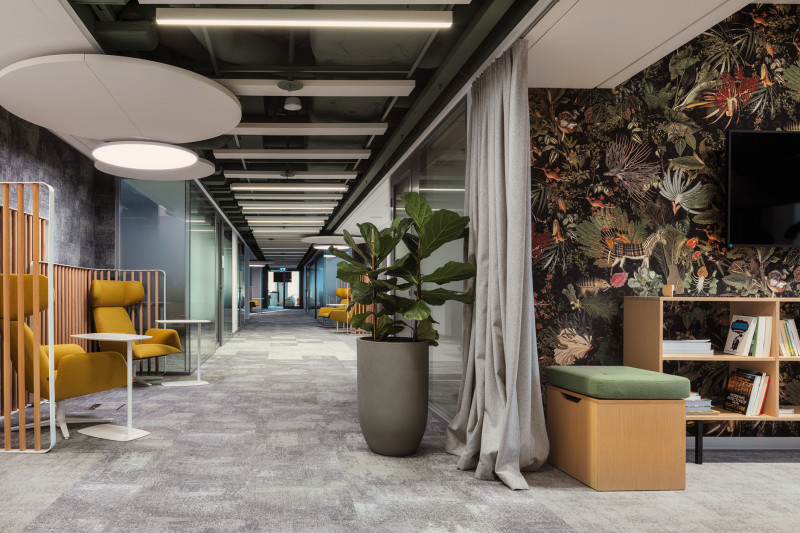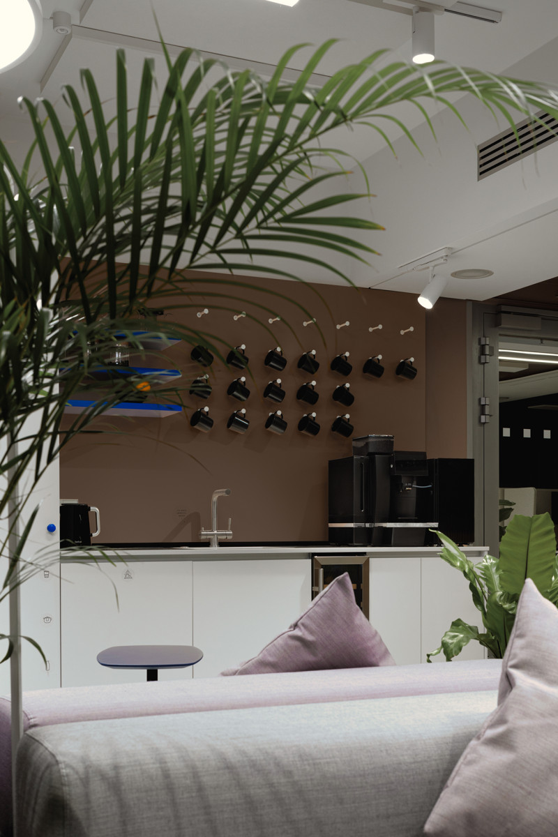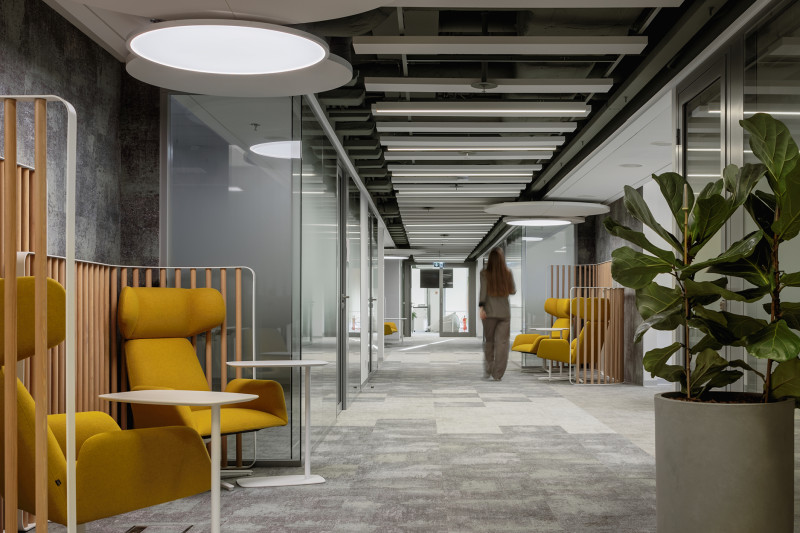 Interior design for IF Apdrošināšana in the Center of Riga, one of the largest insurance companies in Latvia. Each floor’s in different color tone changes the user experience while maintaining a unified identity. The space features a comfortable kitchen for daily use and gatherings, with a color palette of blue, gray, and natural wood, complemented by various textures and materials. High-quality materials, comfortable furniture design, coziness, and multifunctionality are the key elements for a successful and comfortable modern office environment.